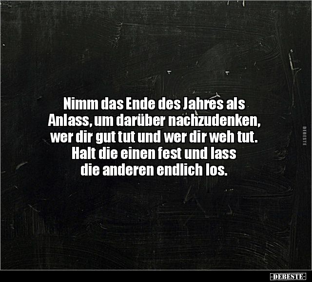 Nimm das Ende des Jahres als Anlass, um darüber nachzudenken, wer dir gut tut und wer dir weh tut. Halt die einen fest und lass die anderen endlich los.