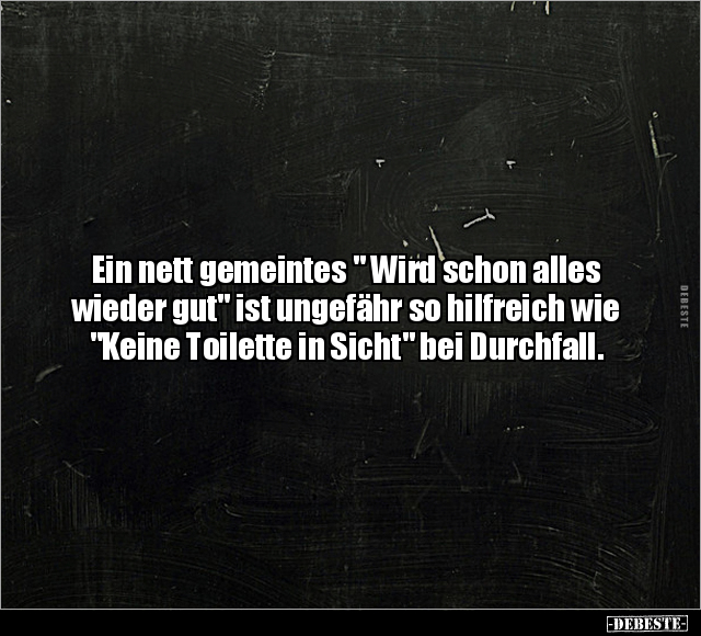 Ein nett gemeintes " Wird schon alles wieder gut" ist ungefähr so hilfreich wie "Keine Toilette in Sicht" bei Durchfall.