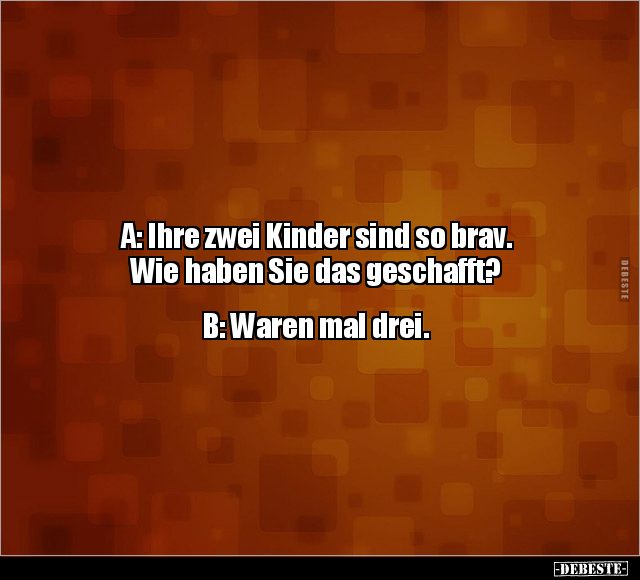 A: Ihre zwei Kinder sind so brav. Wie haben Sie das geschafft? B: Waren mal drei.