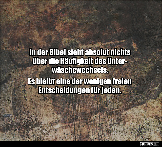 In der Bibel steht absolut nichts über die Häufigkeit des Unter- wäschewechsels. Es bleibt eine der wenigen freien Entscheidungen für jeden.