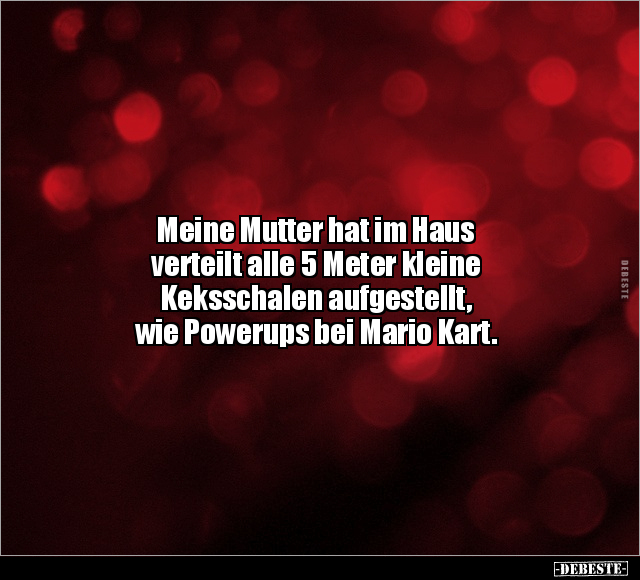 Meine Mutter hat im Haus verteilt alle 5 Meter kleine Keksschalen aufgestellt, wie Powerups bei Mario Kart.
