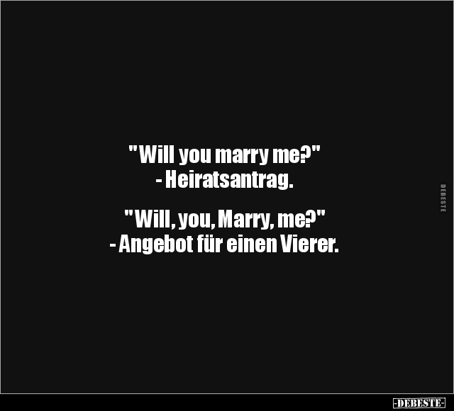 " Will you marry me?" - Heiratsantrag. " Will, you, Marry, me?" - Angebot für einen Vierer.