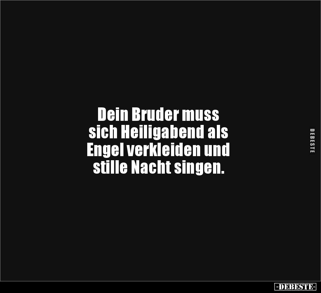 Dein Bruder muss sich Heiligabend als Engel verkleiden und stille Nacht singen.