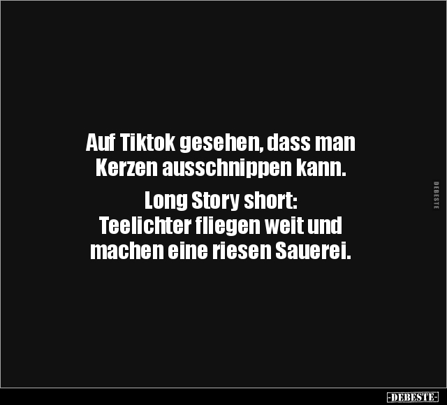 Auf Tiktok gesehen, dass man Kerzen ausschnippen kann. Long Story short: Teelichter fliegen weit und machen eine riesen Sauerei.
