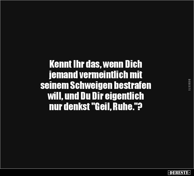 Kennt Ihr das, wenn Dich jemand vermeintlich mit seinem Schweigen bestrafen will, und Du Dir eigentlich nur denkst "Geil, Ruhe."?