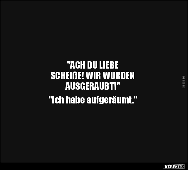 "ACH DU LIEBE SCHEIßE! WIR WURDEN AUSGERAUBT!" "Ich habe aufgeräumt."