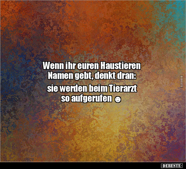 Wenn ihr euren Haustieren Namen gebt, denkt dran: sie werden beim Tierarzt so aufgerufen ☻
