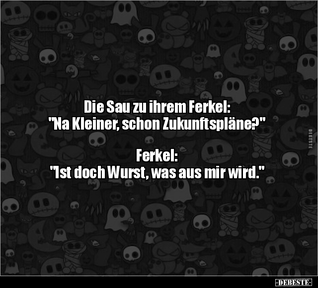 Die Sau zu ihrem Ferkel: "Na Kleiner, schon Zukunftspläne?" Ferkel: "Ist doch Wurst, was aus mir wird."