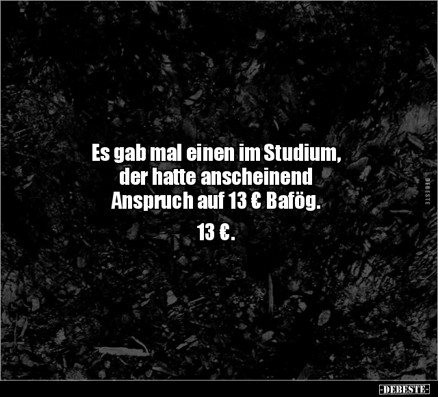 Es gab mal einen im Studium, der hatte anscheinend Anspruch auf 13 € Bafög. 13 €.