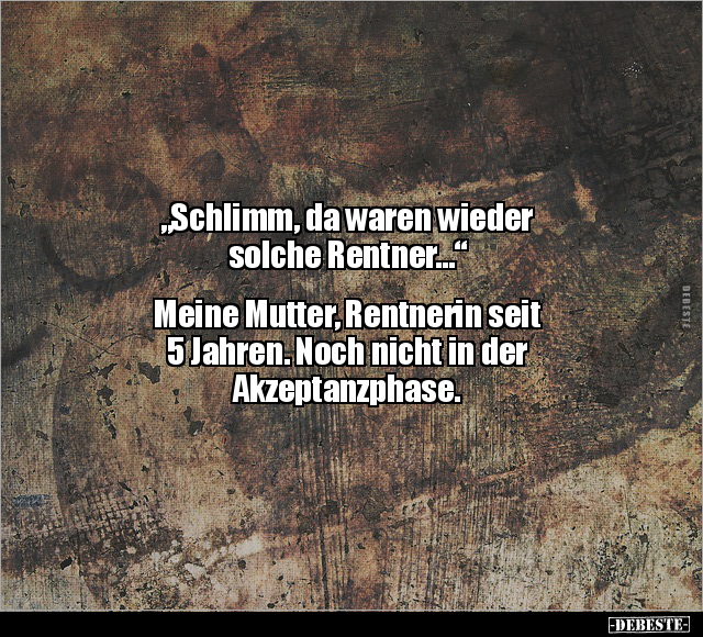 „Schlimm, da waren wieder solche Rentner...“ Meine Mutter, Rentnerin seit 5 Jahren. Noch nicht in der Akzeptanzphase.