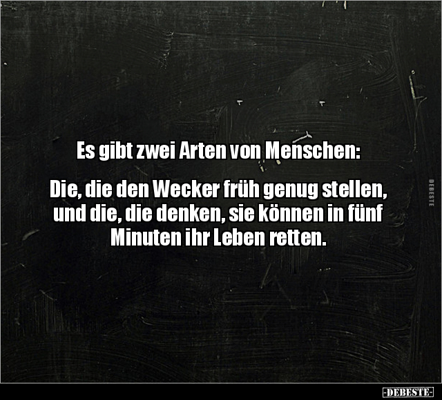 Es gibt zwei Arten von Menschen: Die, die den Wecker früh genug stellen, und die, die denken, sie können in fünf Minuten ihr Leben retten.