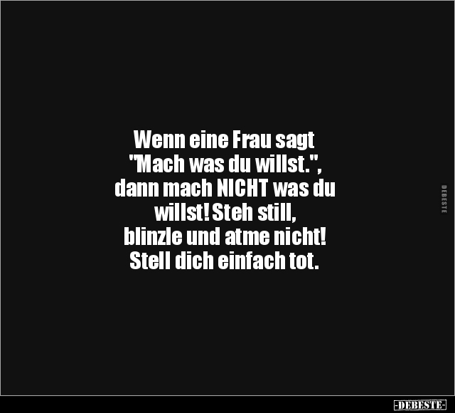 Wenn eine Frau sagt "Mach was du willst.", dann mach NICHT was du willst! Steh still, blinzle und atme nicht! Stell dich einfach tot.