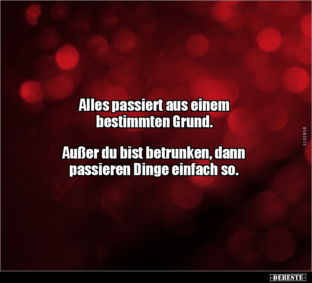 Alles passiert aus einem bestimmten Grund. Außer du bist betrunken, dann passieren Dinge einfach so.