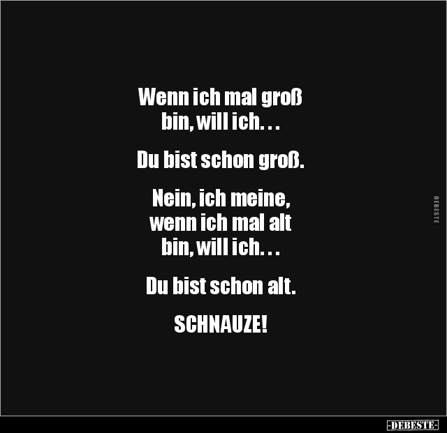 Wenn ich mal groß bin, will ich. . . Du bist schon groß. Nein, ich meine, wenn ich mal alt bin, will ich. . . Du bist schon alt. SCHNAUZE!