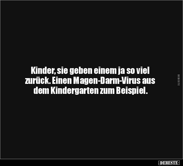 Kinder, sie geben einem ja so viel zurück. Einen Magen-Darm-Virus aus dem Kindergarten zum Beispiel.