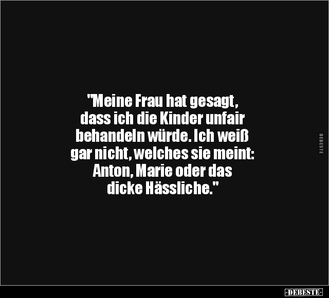 "Meine Frau hat gesagt, dass ich die Kinder unfair behandeln würde. Ich weiß gar nicht, welches sie meint: Anton, Marie oder das dicke Hässliche."