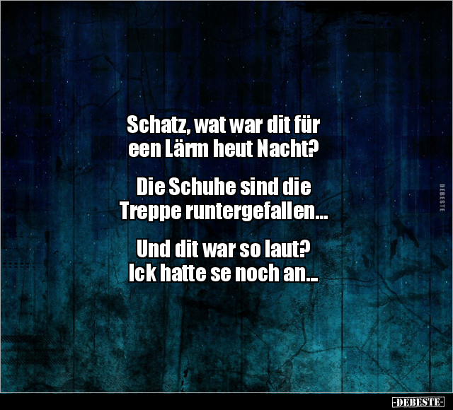 Schatz, wat war dit für een Lärm heut Nacht? Die Schuhe sind die Treppe runtergefallen... Und dit war so laut? Ick hatte se noch an...