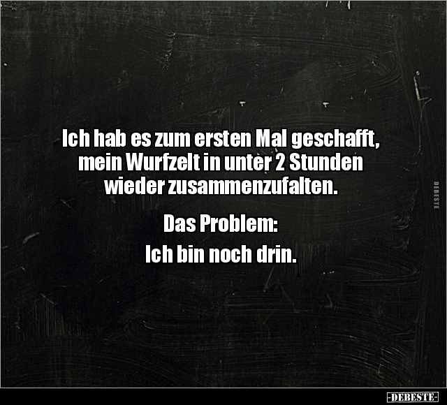 Ich hab es zum ersten Mal geschafft, mein Wurfzelt in unter 2 Stunden wieder zusammenzufalten. Das Problem: Ich bin noch drin.