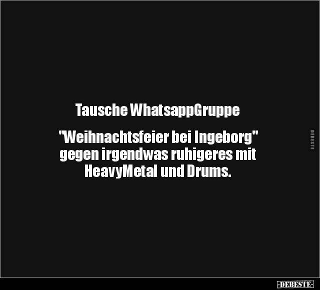 Tausche WhatsappGruppe "Weihnachtsfeier bei Ingeborg" gegen irgendwas ruhigeres mit HeavyMetal und Drums.