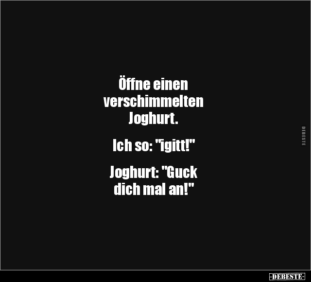 Öffne einen verschimmelten Joghurt. Ich so: "igitt!" Joghurt: "Guck dich mal an!"