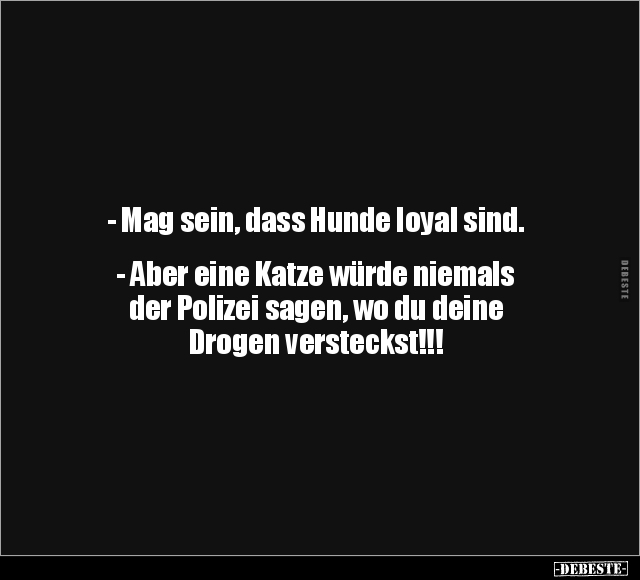 - Mag sein, dass Hunde loyal sind. - Aber eine Katze würde niemals der Polizei sagen, wo du deine Drogen versteckst!!!
