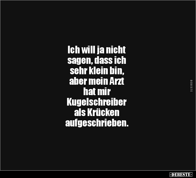 Ich will ja nicht sagen, dass ich sehr klein bin, aber mein Arzt hat mir Kugelschreiber als Krücken aufgeschrieben.