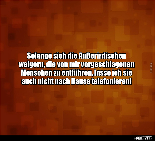 Solange sich die Außerirdischen weigern, die von mir vorgeschlagenen Menschen zu entführen, lasse ich sie auch nicht nach Hause telefonieren!
