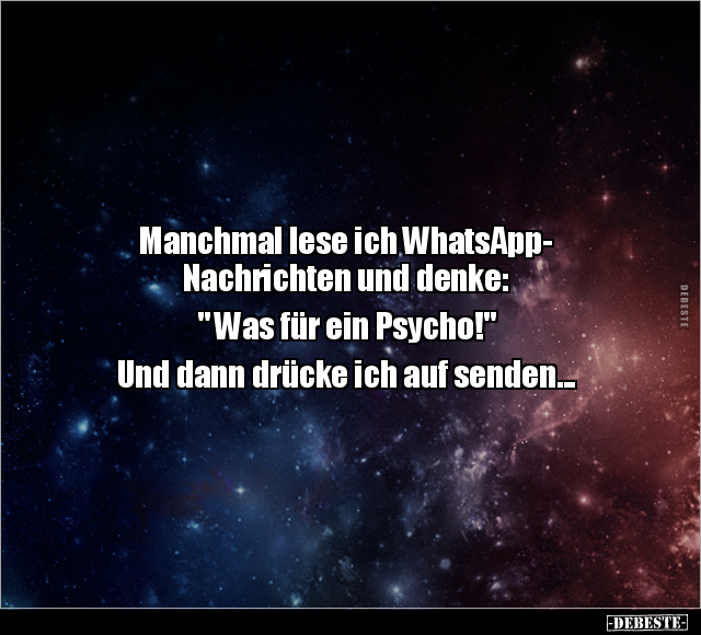 Manchmal lese ich WhatsApp- Nachrichten und denke: " Was für ein Psycho!" Und dann drücke ich auf senden...