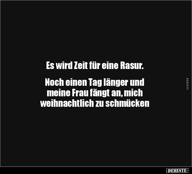 Es wird Zeit für eine Rasur. Noch einen Tag länger und meine Frau fängt an, mich weihnachtlich zu schmücken