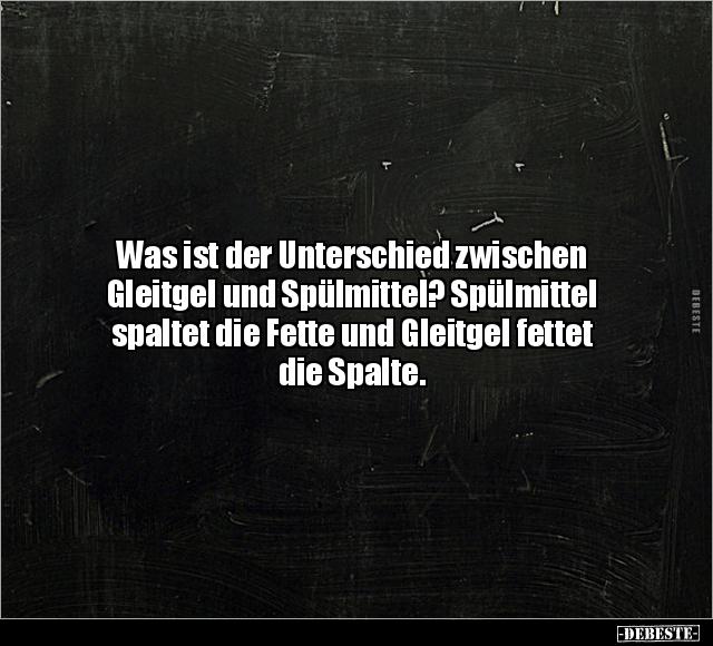 Was ist der Unterschied zwischen Gleitgel und Spülmittel? Spülmittel spaltet die Fette und Gleitgel fettet die Spalte.