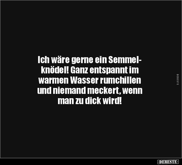 Ich wäre gerne ein Semmel- knödel! Ganz entspannt im warmen Wasser rumchillen und niemand meckert, wenn man zu dick wird!