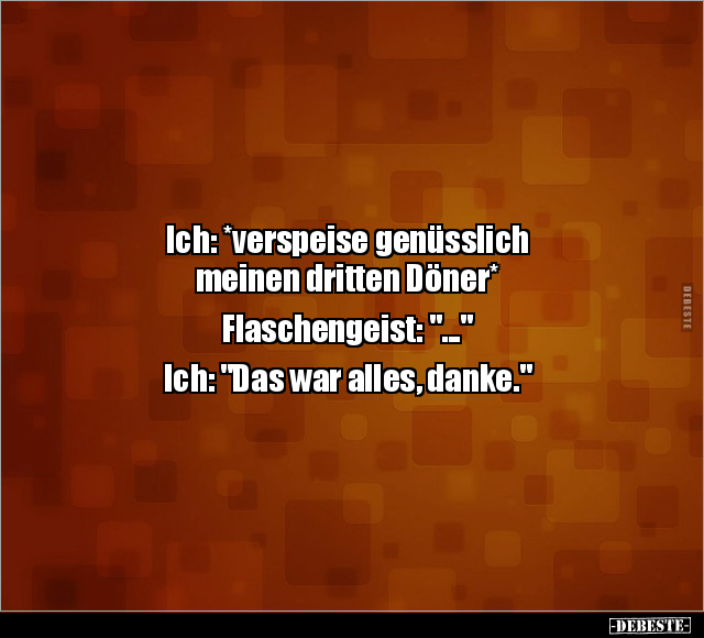 Ich: *verspeise genüsslich meinen dritten Döner* Flaschengeist: "..." Ich: "Das war alles, danke."