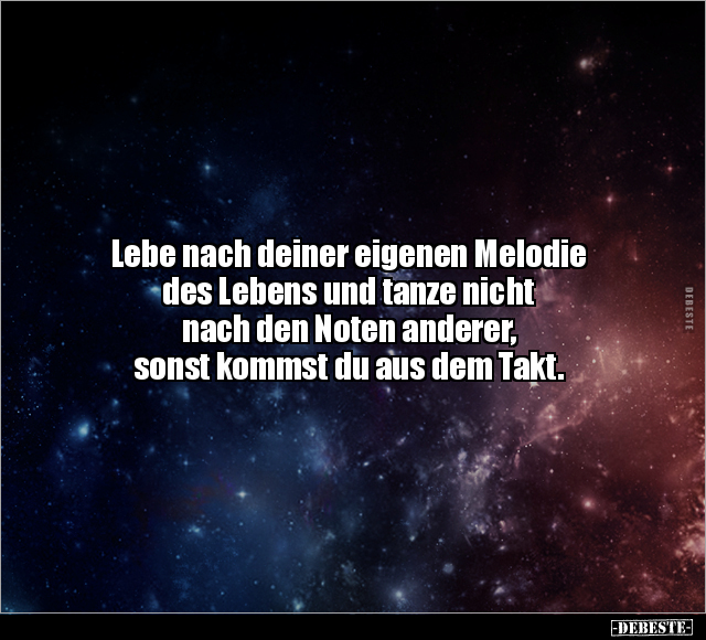 Lebe nach deiner eigenen Melodie des Lebens und tanze nicht nach den Noten anderer, sonst kommst du aus dem Takt.