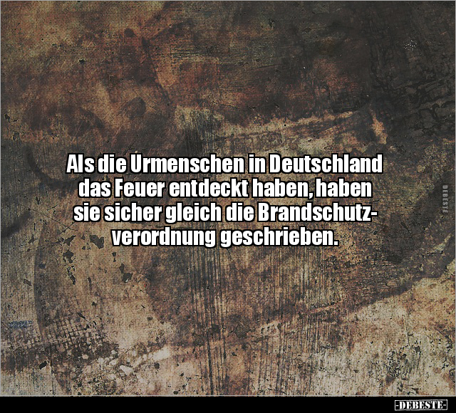 Als die Urmenschen in Deutschland das Feuer entdeckt haben, haben sie sicher gleich die Brandschutz- verordnung geschrieben.