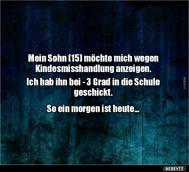 Mein Sohn (15) möchte mich wegen Kindesmisshandlung anzeigen. Ich hab ihn bei - 3 Grad in die Schule geschickt. So ein morgen ist heute...