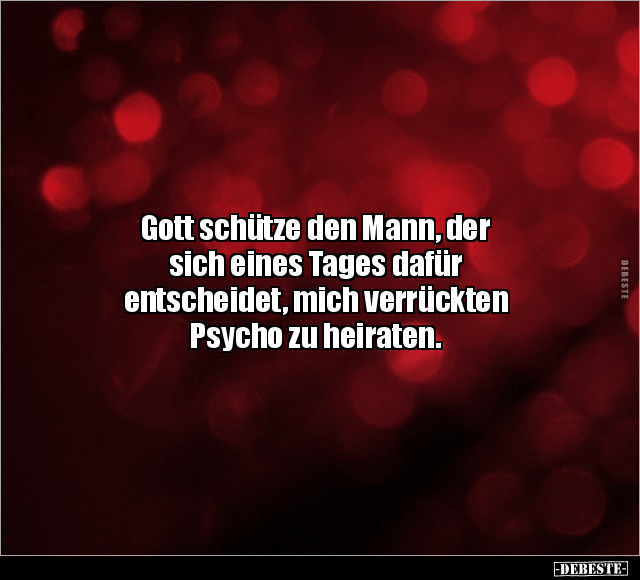 Gott schütze den Mann, der sich eines Tages dafür entscheidet, mich verrückten Psycho zu heiraten.