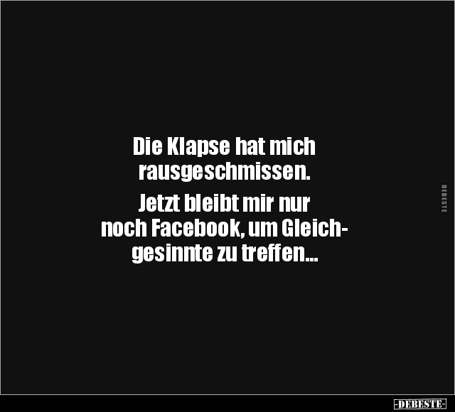 Die Klapse hat mich rausgeschmissen. Jetzt bleibt mir nur noch Facebook, um Gleich- gesinnte zu treffen…