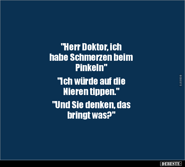 "Herr Doktor, ich habe Schmerzen beim Pinkeln" "Ich würde auf die Nieren tippen." "Und Sie denken, das bringt was?"