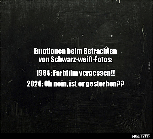Emotionen beim Betrachten von Schwarz-weiß-Fotos: 1984: Farbfilm vergessen!! 2024: Oh nein, ist er gestorben??