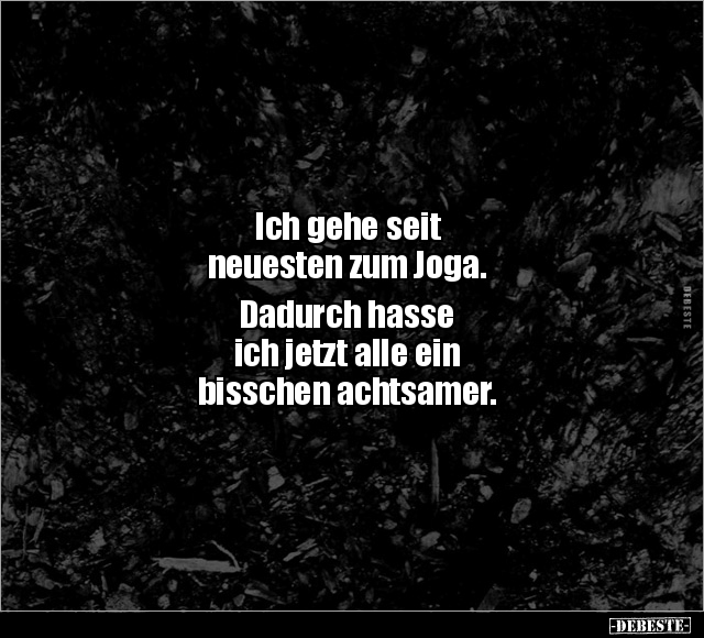 Ich gehe seit neuesten zum Joga. Dadurch hasse ich jetzt alle ein bisschen achtsamer.