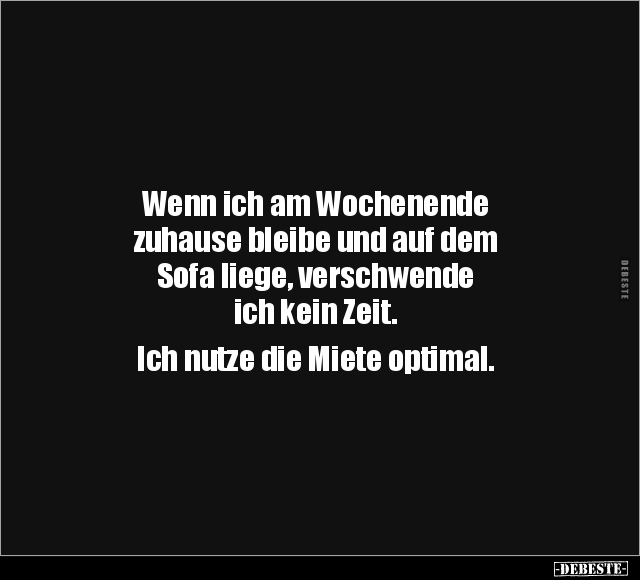 Wenn ich am Wochenende zuhause bleibe und auf dem Sofa liege, verschwende ich kein Zeit. Ich nutze die Miete optimal.
