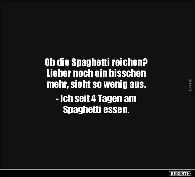 Ob die Spaghetti reichen? Lieber noch ein bisschen mehr, sieht so wenig aus. - Ich seit 4 Tagen am Spaghetti essen.