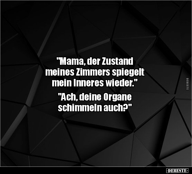 "Mama, der Zustand meines Zimmers spiegelt mein Inneres wieder." "Ach, deine Organe schimmeln auch?"