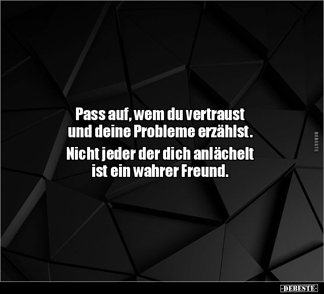 Pass auf, wem du vertraust und deine Probleme erzählst. Nicht jeder der dich anlächelt ist ein wahrer Freund.