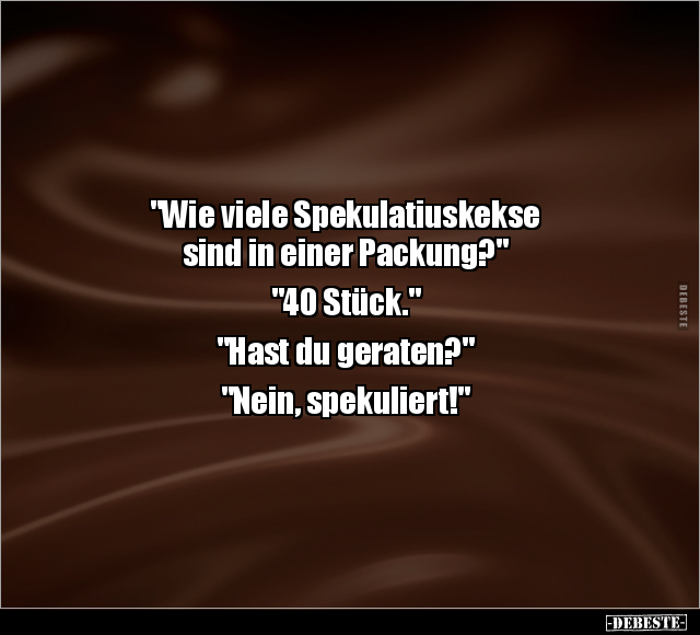"Wie viele Spekulatiuskekse sind in einer Packung?" "40 Stück." "Hast du geraten?" "Nein, spekuliert!"