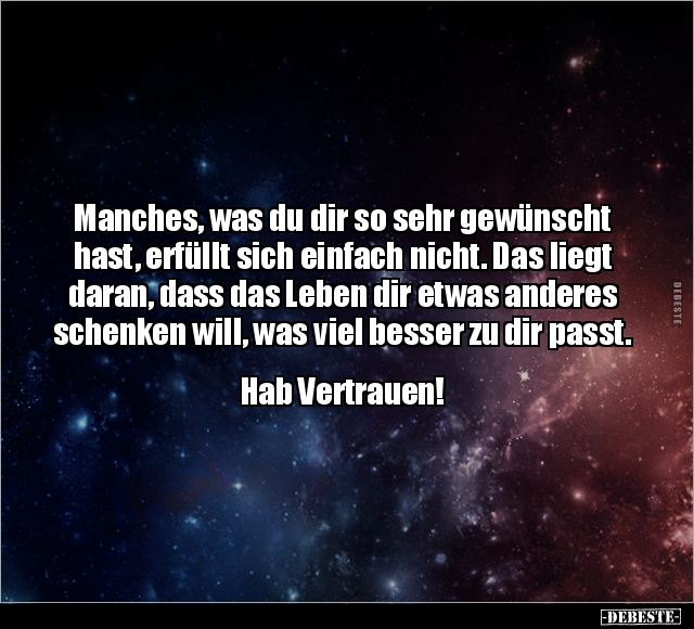 Manches, was du dir so sehr gewünscht hast, erfüllt sich einfach nicht. Das liegt daran, dass das Leben dir etwas anderes schenken will, was viel besser zu dir passt. Hab Vertrauen!