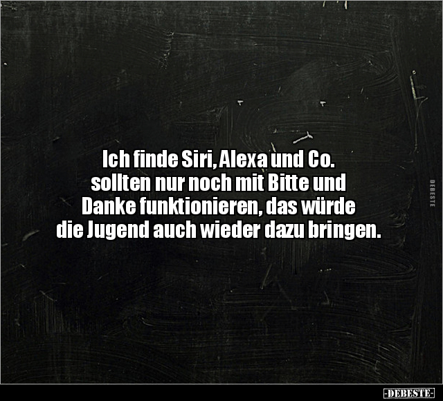 Ich finde Siri, Alexa und Co. sollten nur noch mit Bitte und Danke funktionieren, das würde die Jugend auch wieder dazu bringen.