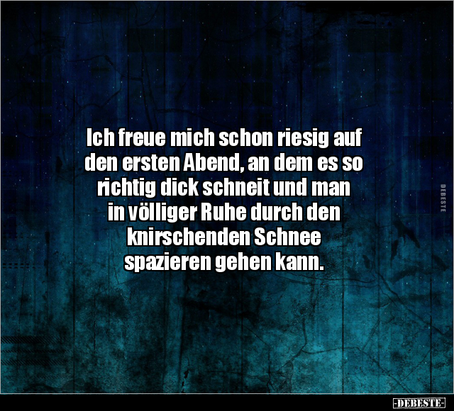 Ich freue mich schon riesig auf den ersten Abend, an dem es so richtig dick schneit und man in völliger Ruhe durch den knirschenden Schnee spazieren gehen kann.