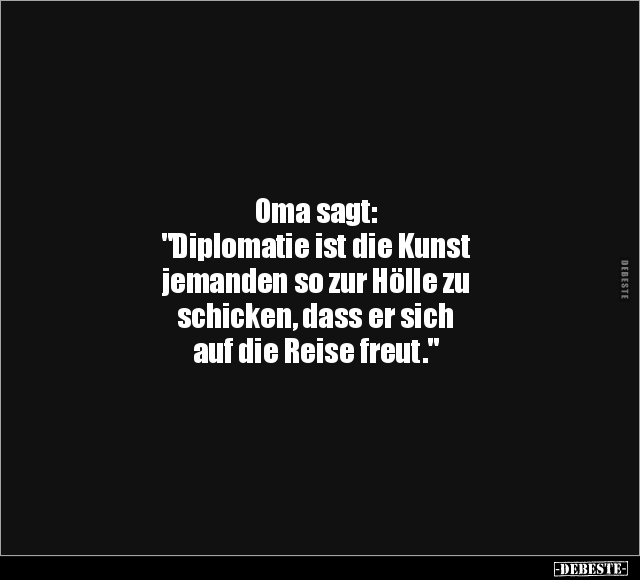 Oma sagt: "Diplomatie ist die Kunst jemanden so zur Hölle zu schicken, dass er sich auf die Reise freut."