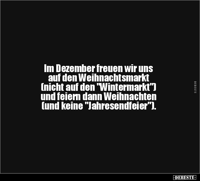 Im Dezember freuen wir uns auf den Weihnachtsmarkt (nicht auf den "Wintermarkt") und feiern dann Weihnachten (und keine "Jahresendfeier").